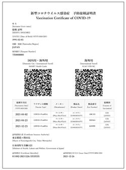 紙のワクチン接種証明(下記サンプル画像)ワクチン接種証明書には「紙の証明書」と「デジタル証明書」の2種類があります。渡航先の国によって求める証明書の種類が異なるケースがありますので、どちらも取得しておく事をお勧めします。ワクチン接種証明書は、日本帰国時の待機免除に必要となる他、渡航先の入国や待機措置免除、ホテルチェックイン時にも提出が必要な場合がございます。3回の接種を終えていないと、ワクチン接種完了者とみなされない国もあります。
